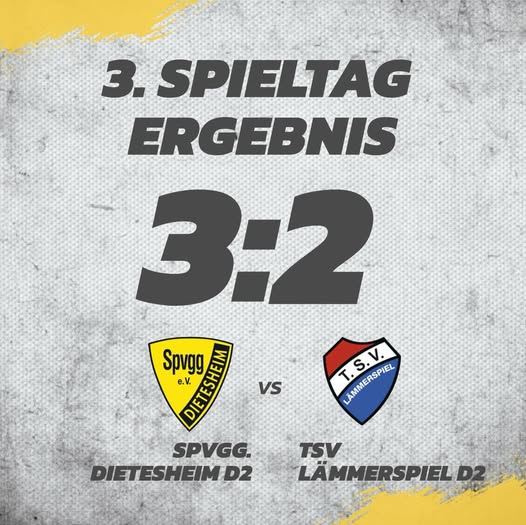 Die Dietesheimer D2 hat sich in einem intensiven Duell gegen die Zweitvertretung aus Lämmerspiel mit 3:2 behauptet und in der Nachspielzeit das lautstark umjubelte Siegtor nach einem Eckball durch Sada Kiflezghi erzielt. In der ersten Halbzeit gingen die Kicker vom TSV in der 11. Minute auswärts in Führung und hielten dem großen Druck der Dietesheimer über weitere Strecken defensiv stand. Das verdiente 1:1 erzielte Stefan Stricker in der 18. Minute. Aus der Feldüberlegenheit konnte die Heimmannschaft bis zum Pausenpfiff jedoch kein weiteres Kapital schlagen.